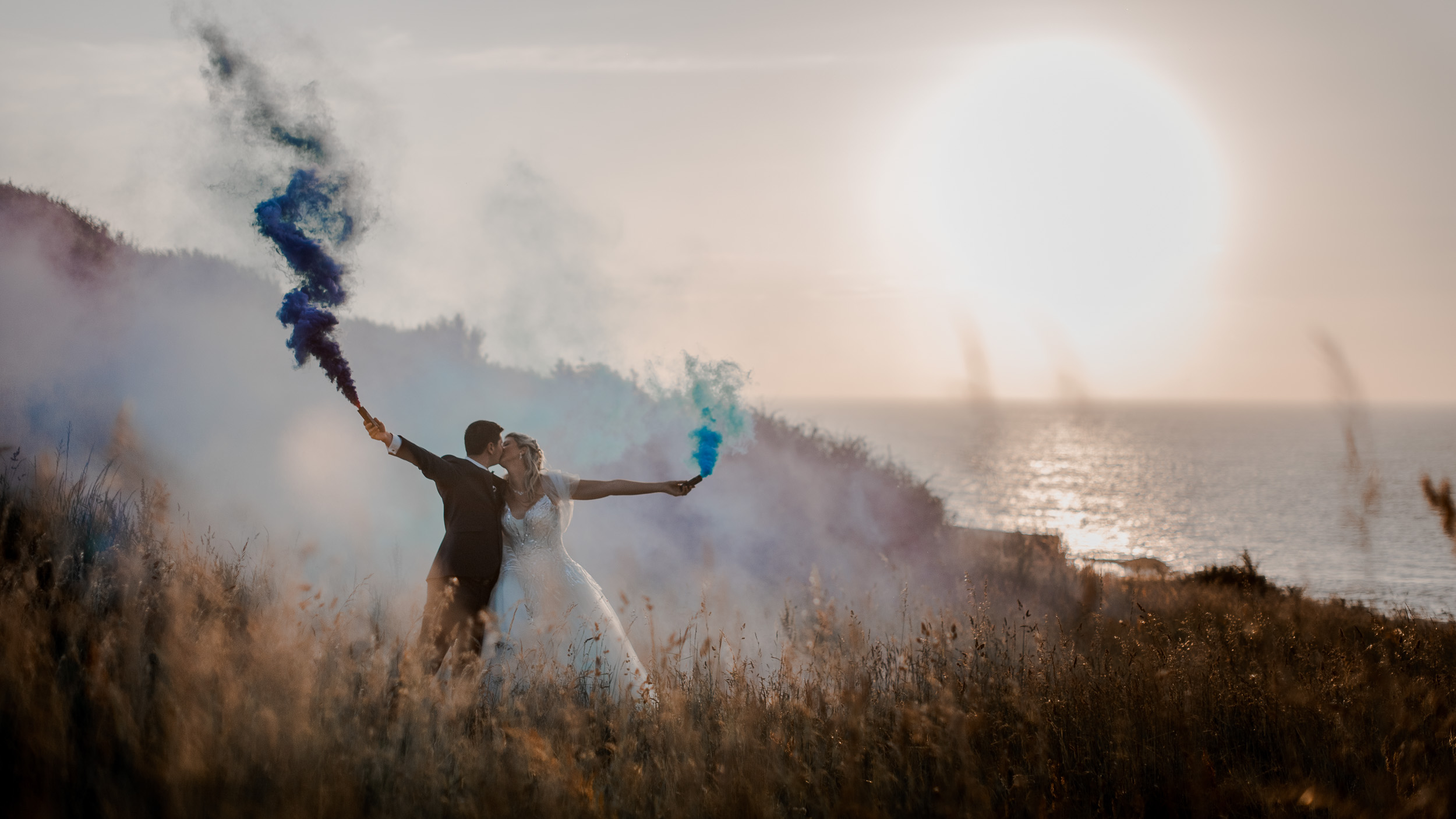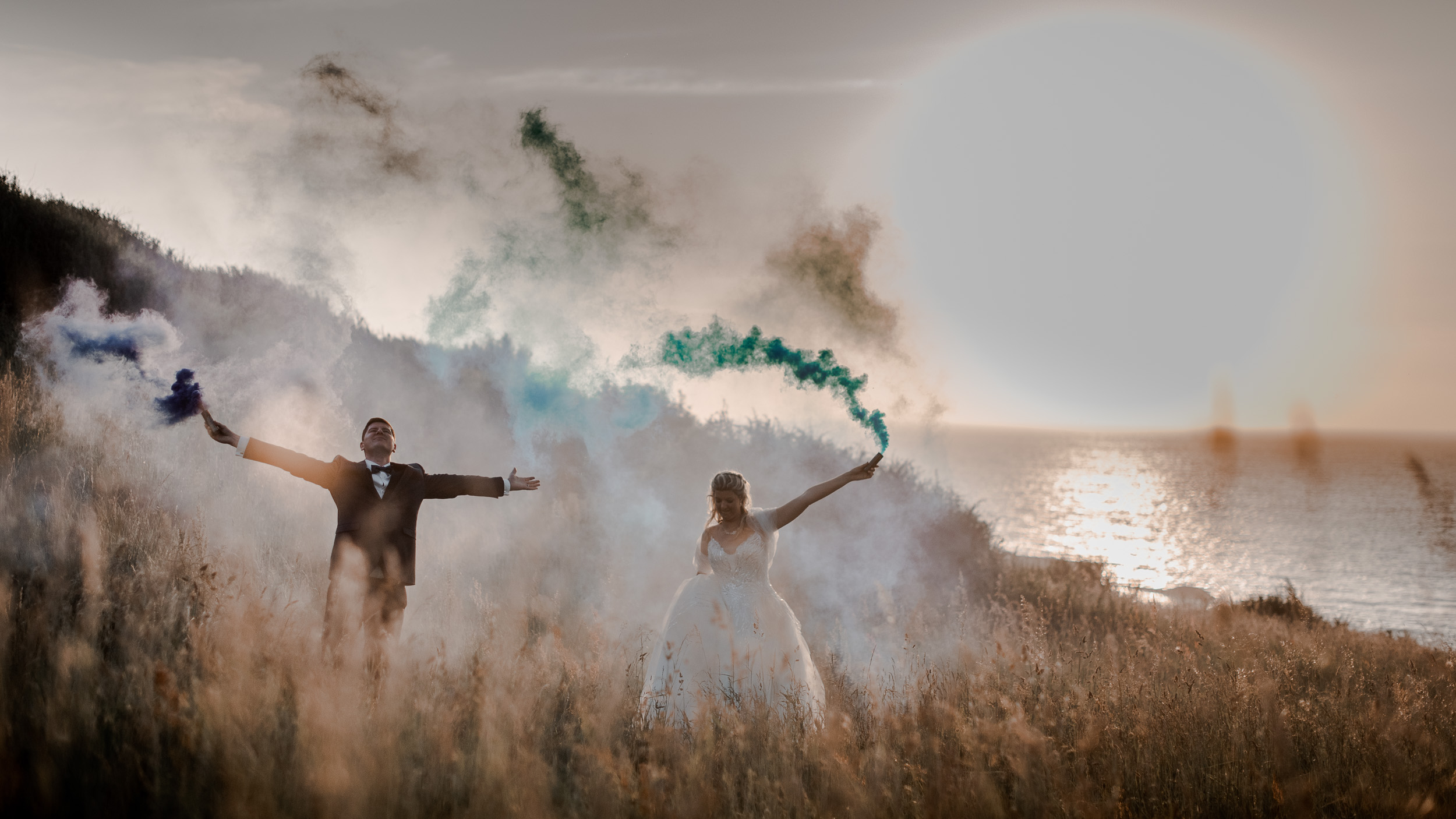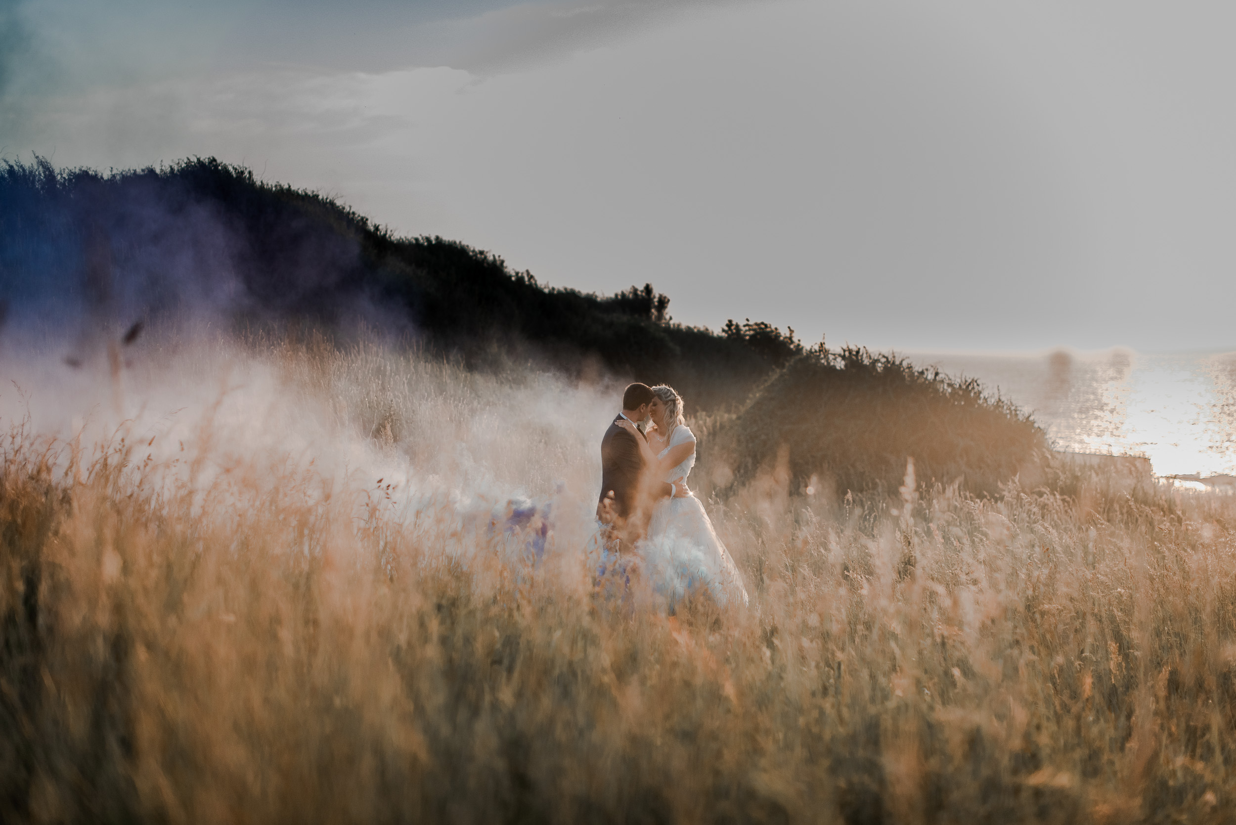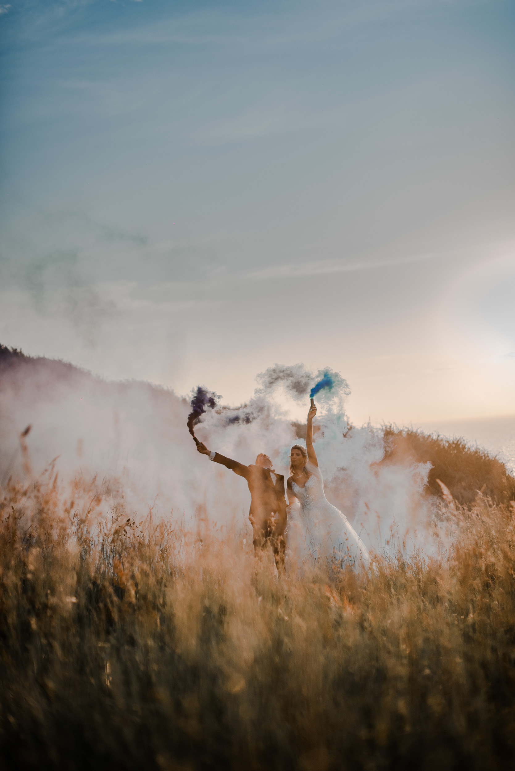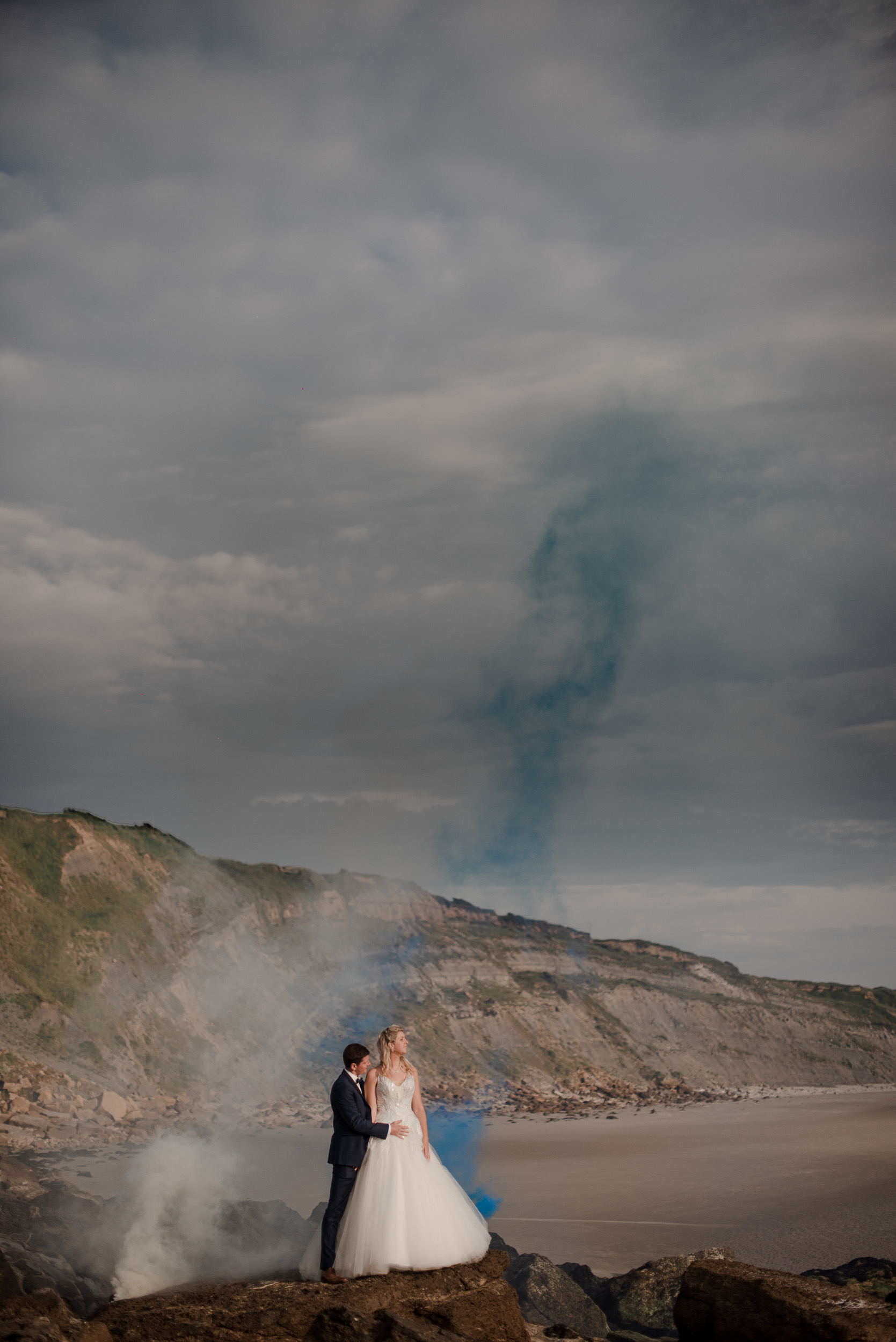 Un lieu empreint d’histoire, de vestiges. Alyssa et Mickaël désiraient un souvenir intemporel de leur After the Day, et après ce qu’ils avaient préparé pour leur mariage, je me devais de les emmener dans un endroit différent. Nous n’avons pas du sélectionner le meilleur sentier pour y parvenir. Une fois sur place c’est parti pour une séance pleine de fun jusqu’à finir dans les rochers et sur les hauteurs avec les fumigènes que Mickaël avait prévus.