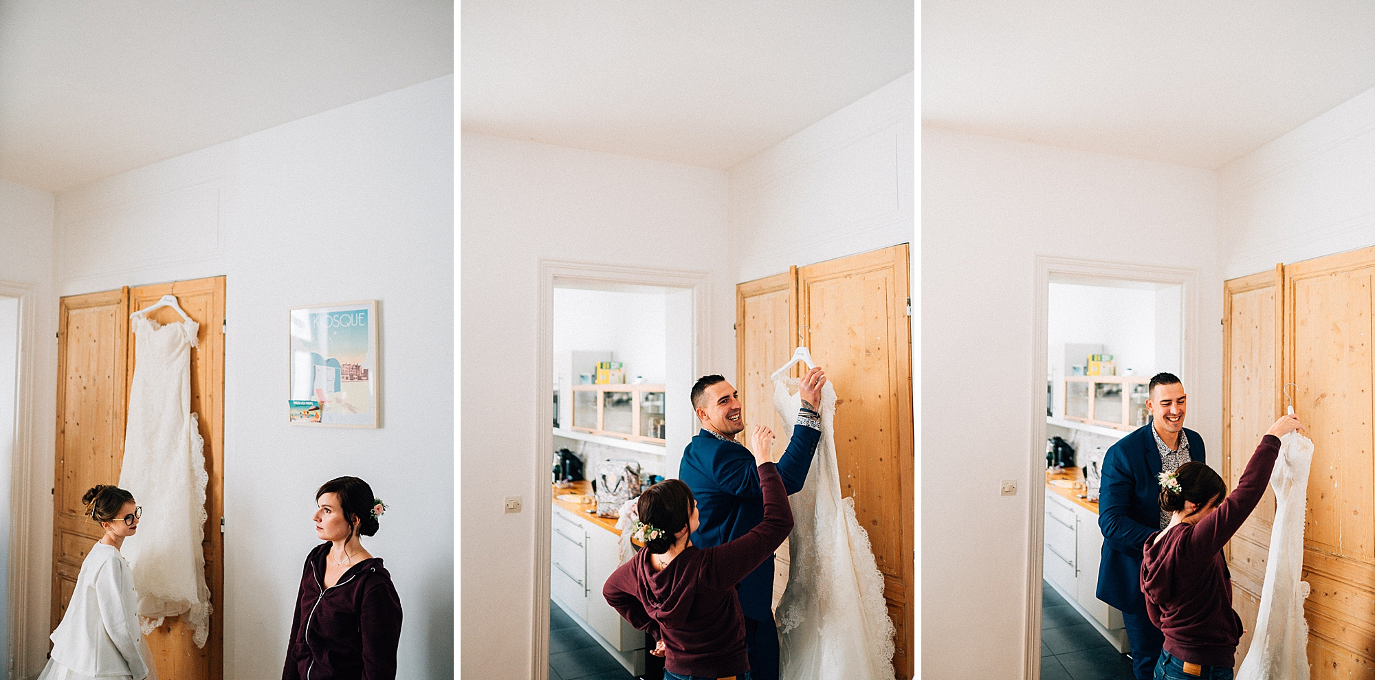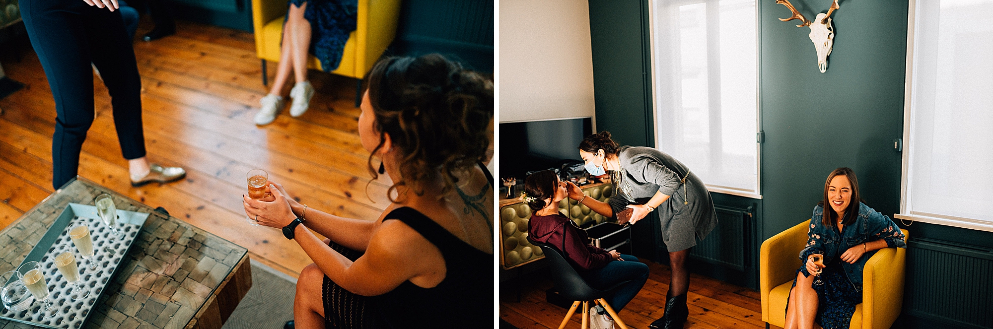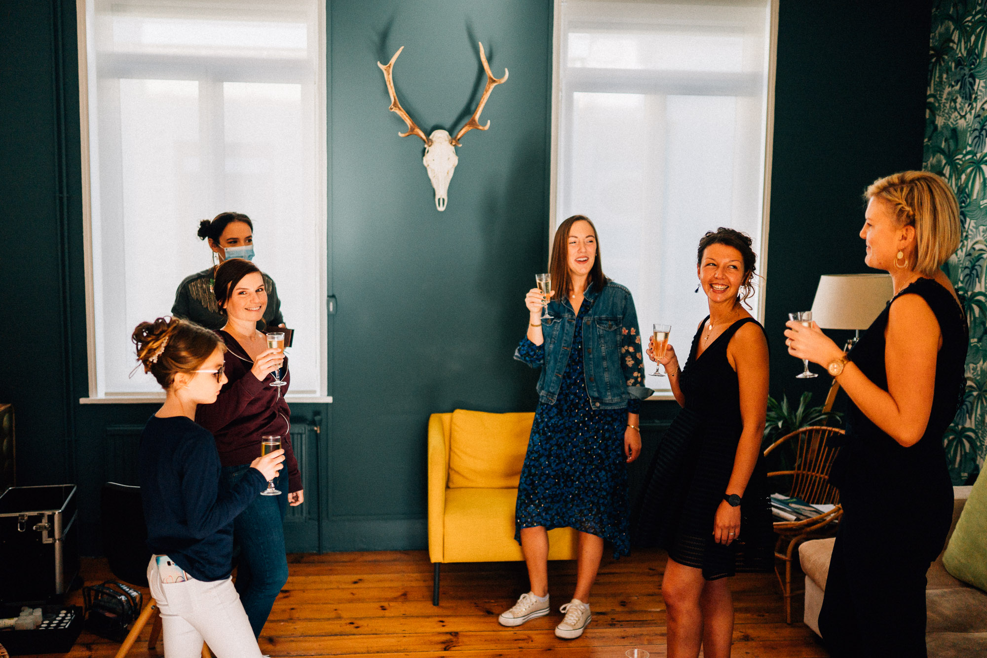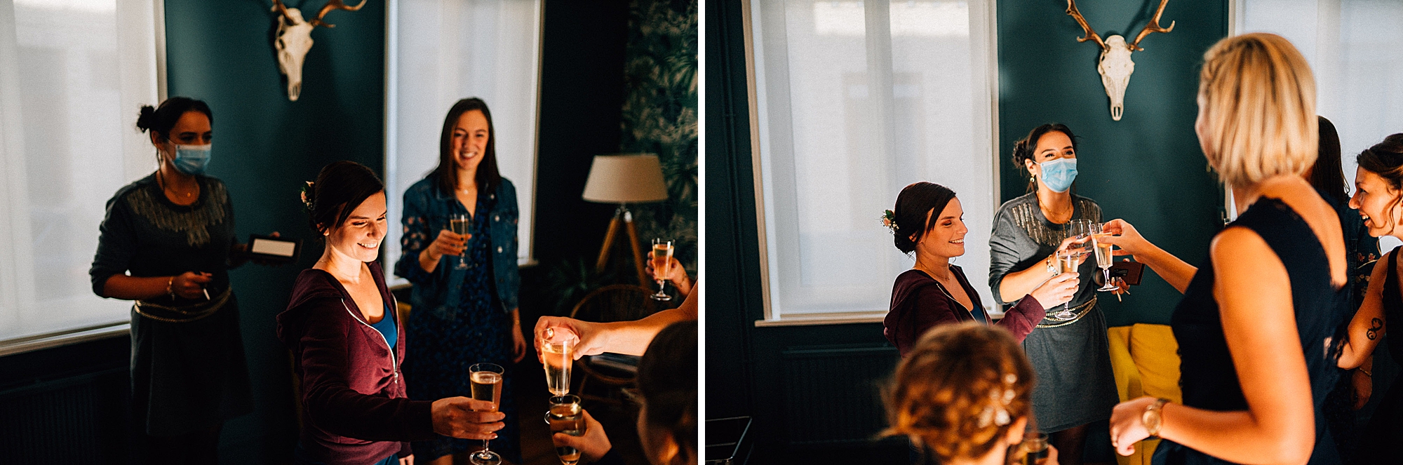 Elisa et Vincent, deux soignants, ont eux aussi modifié leurs plans ! Ces nouvelles conditions n’ont pas entaché leur fête. Une belle journée d’octobre, des préparatifs à Malo pour ensuite célébrer une cérémonie laïque au château de l’Afgand. Familles et proches étaient ravis de pouvoir se retrouver… Une ambiance qui nous a fait oublier le climat actuel.
