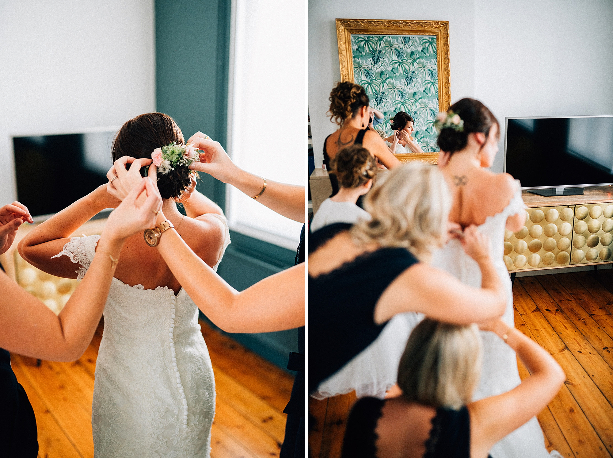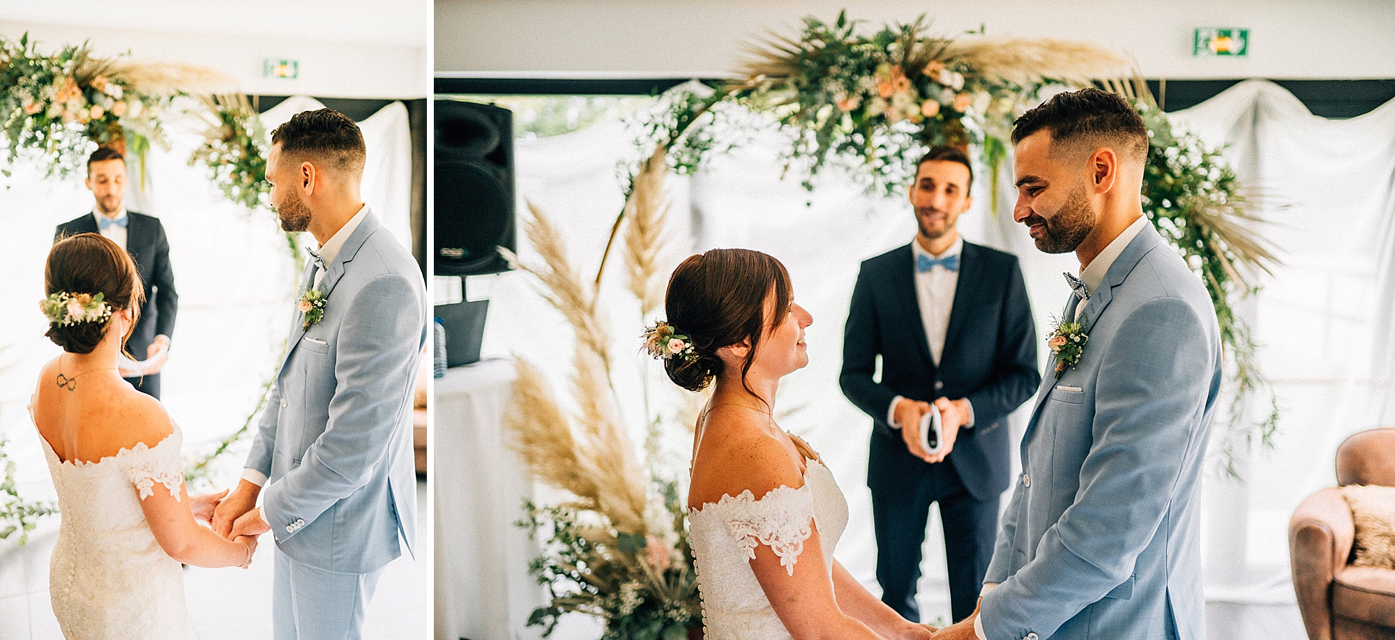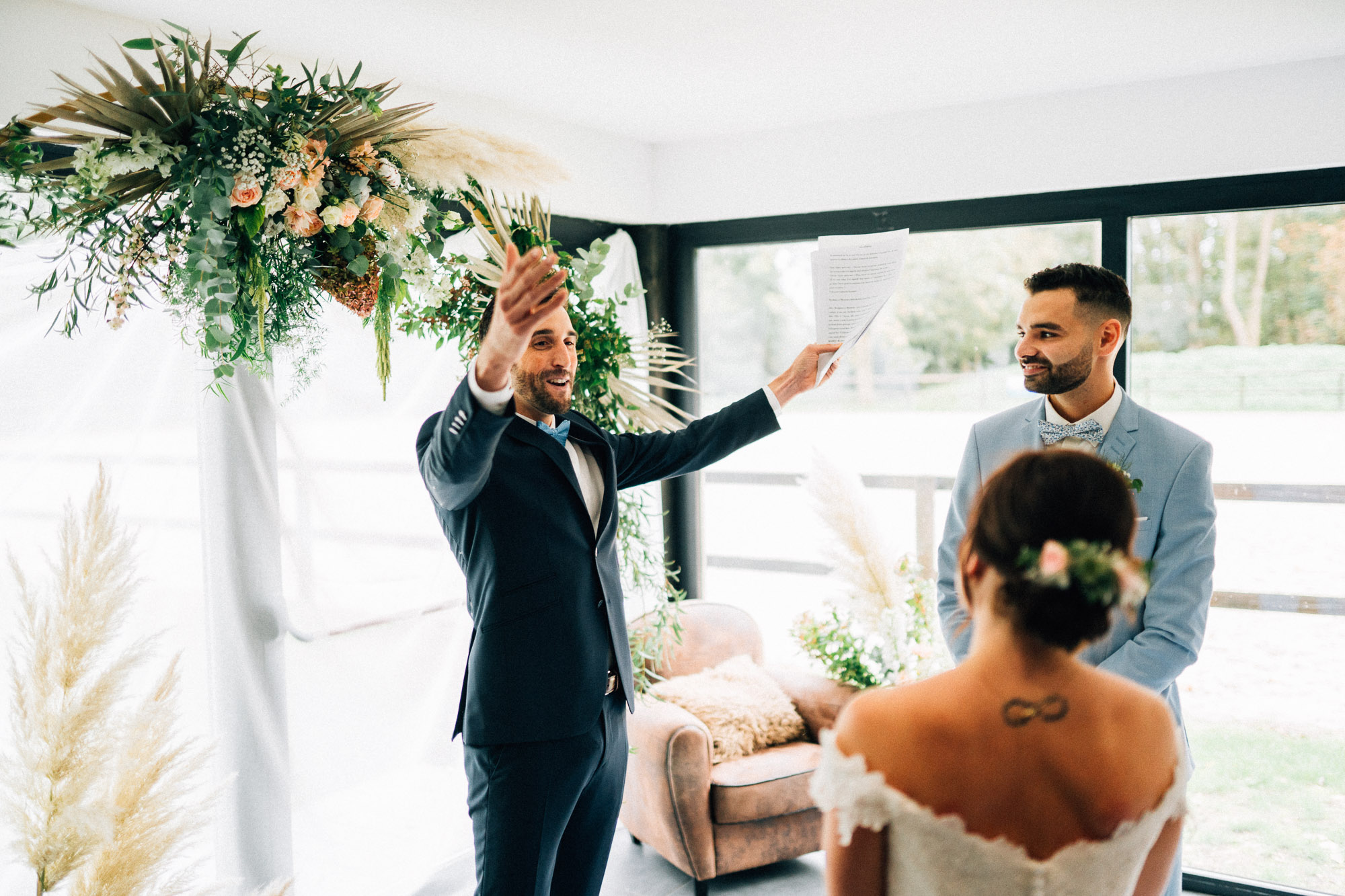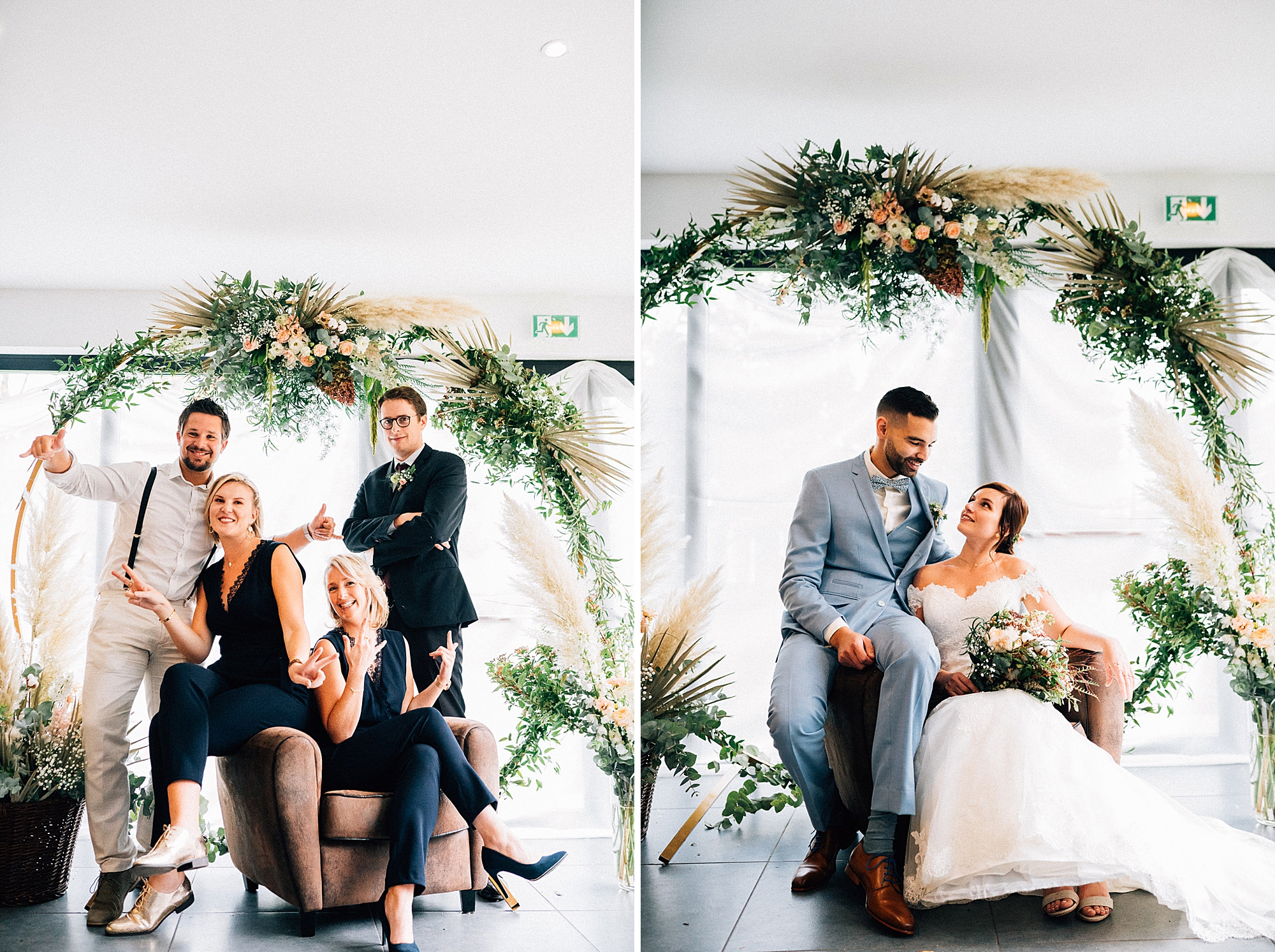 Elisa et Vincent, deux soignants, ont eux aussi modifié leurs plans ! Ces nouvelles conditions n’ont pas entaché leur fête. Une belle journée d’octobre, des préparatifs à Malo pour ensuite célébrer une cérémonie laïque au château de l’Afgand. Familles et proches étaient ravis de pouvoir se retrouver… Une ambiance qui nous a fait oublier le climat actuel.