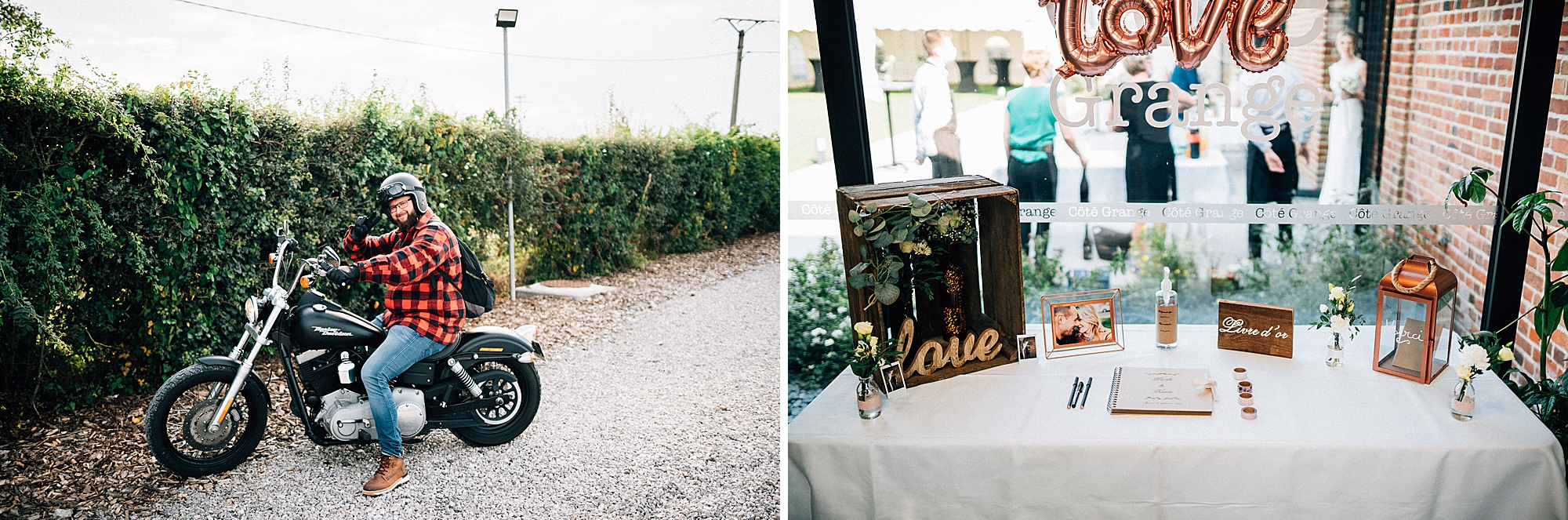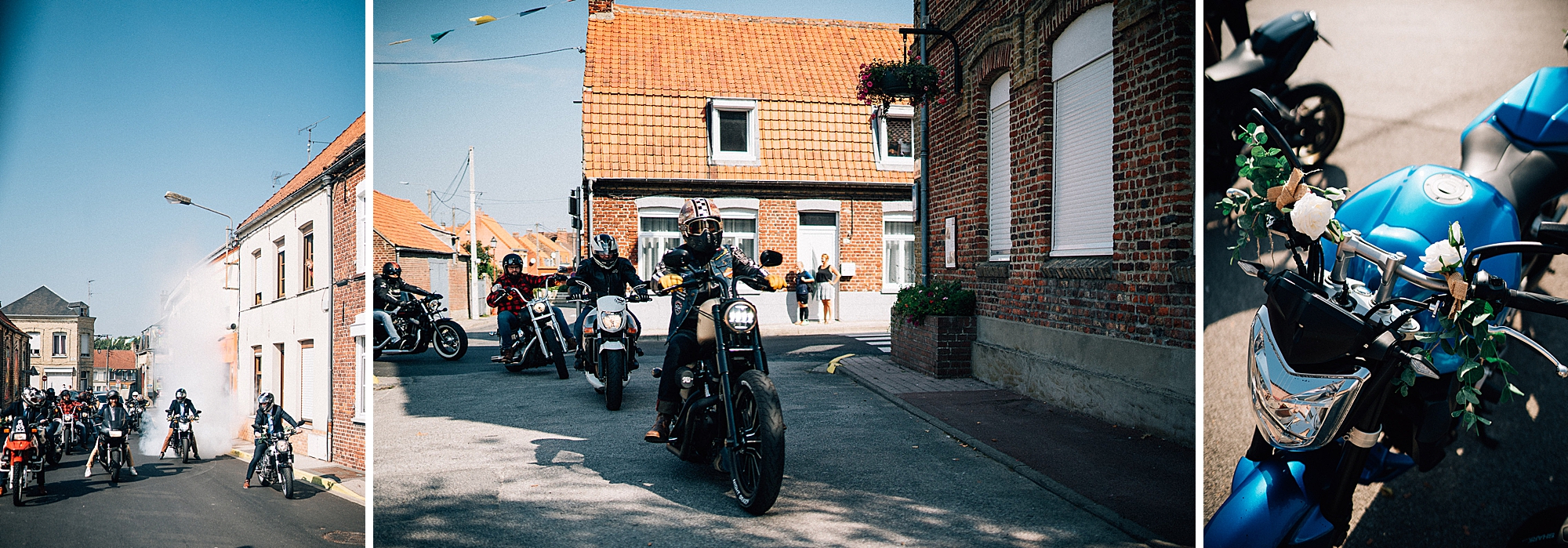 Ce n’est donc pas sans émotion que je les ai accompagnés de leurs préparatifs jusqu’à leur cocktail, Côté Grange à Cassel. Suivi de leurs enfants, amis, familles et d’une belle bande de bikers.